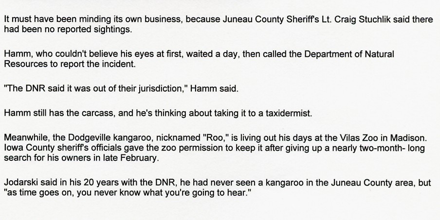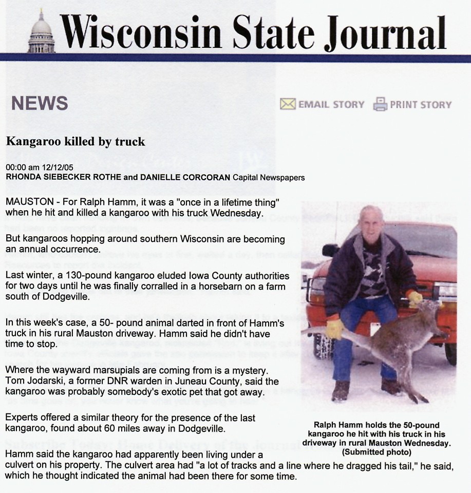 This article originally appeared in the Wisconsin State Journal on December 12th, 2005.  Mauston area sighting.