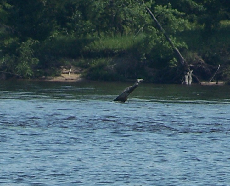 This is a cropped image taken from the best photograph I got that day. Perhaps it is still not quite clear on what it is, especially since I've been filling the more suggestible reader with my 'monster potential' slant. It was a branch sticking up off of a submerged log. The interesting thing is it never once actually moved. It was us on the boat heading further up river that were actually moving. I think it did look quite convincing in the images that it was moving.